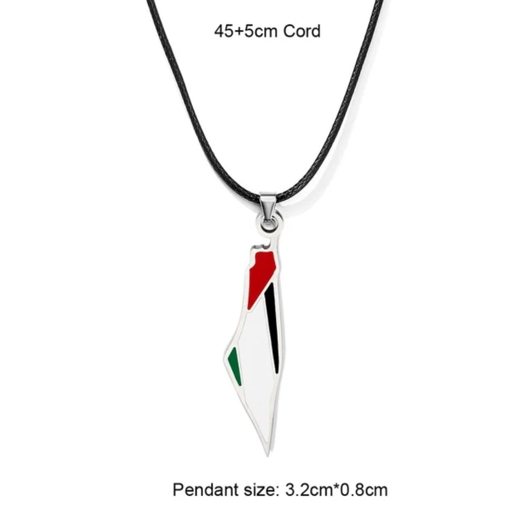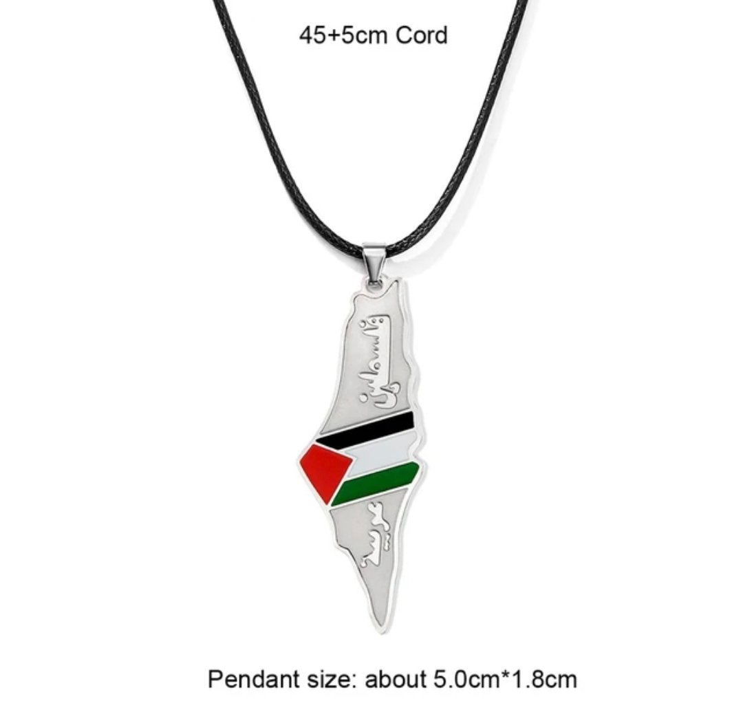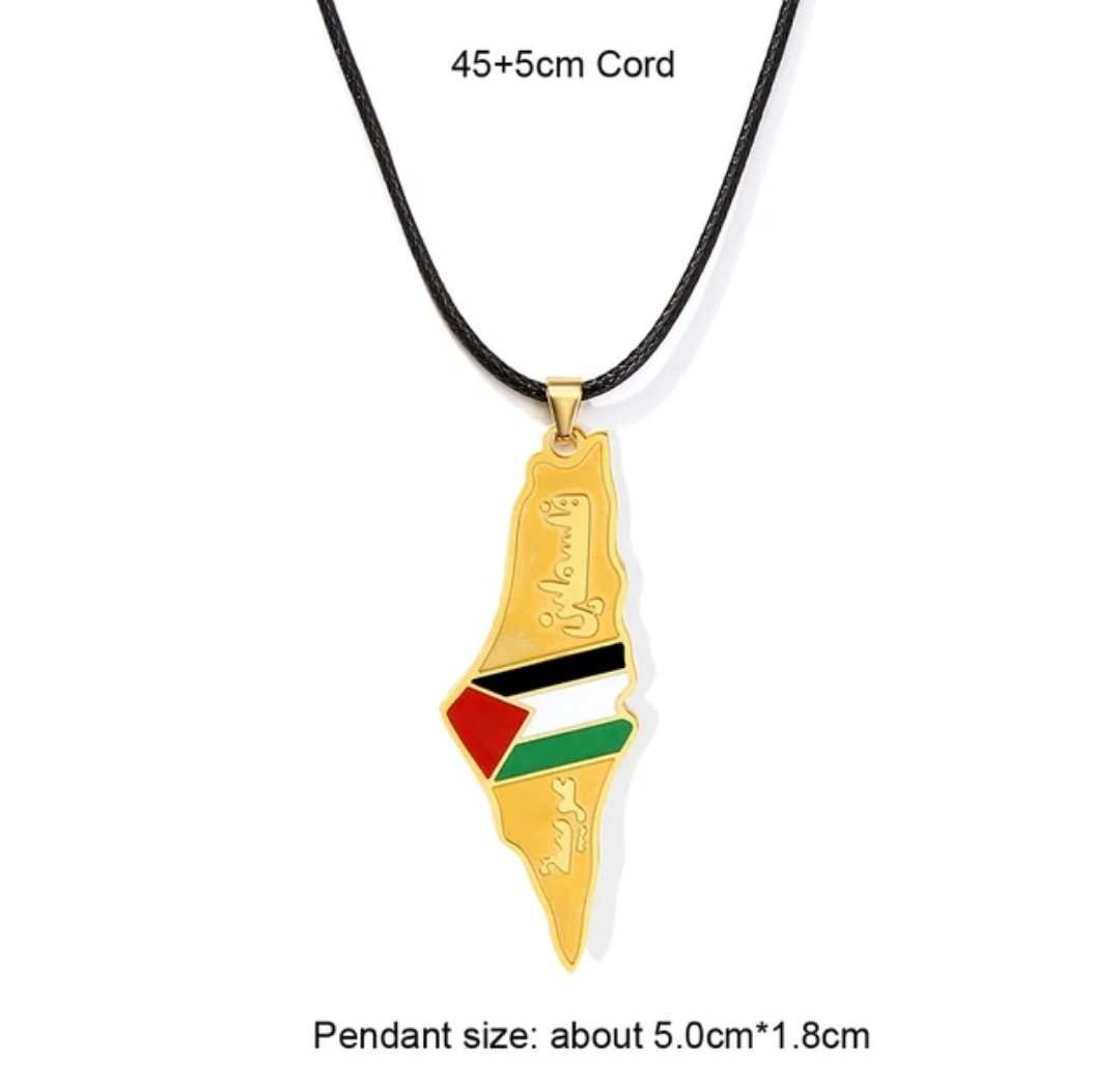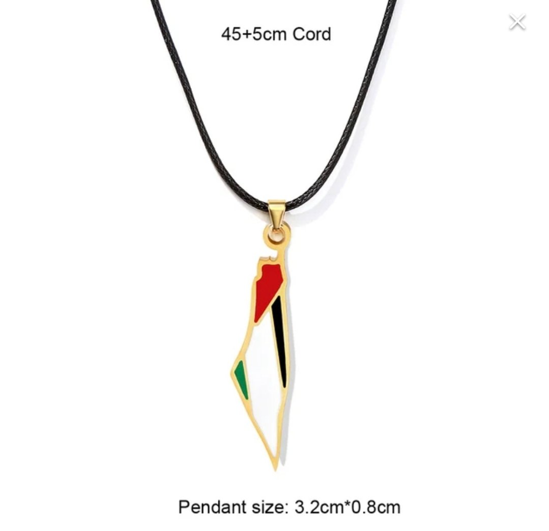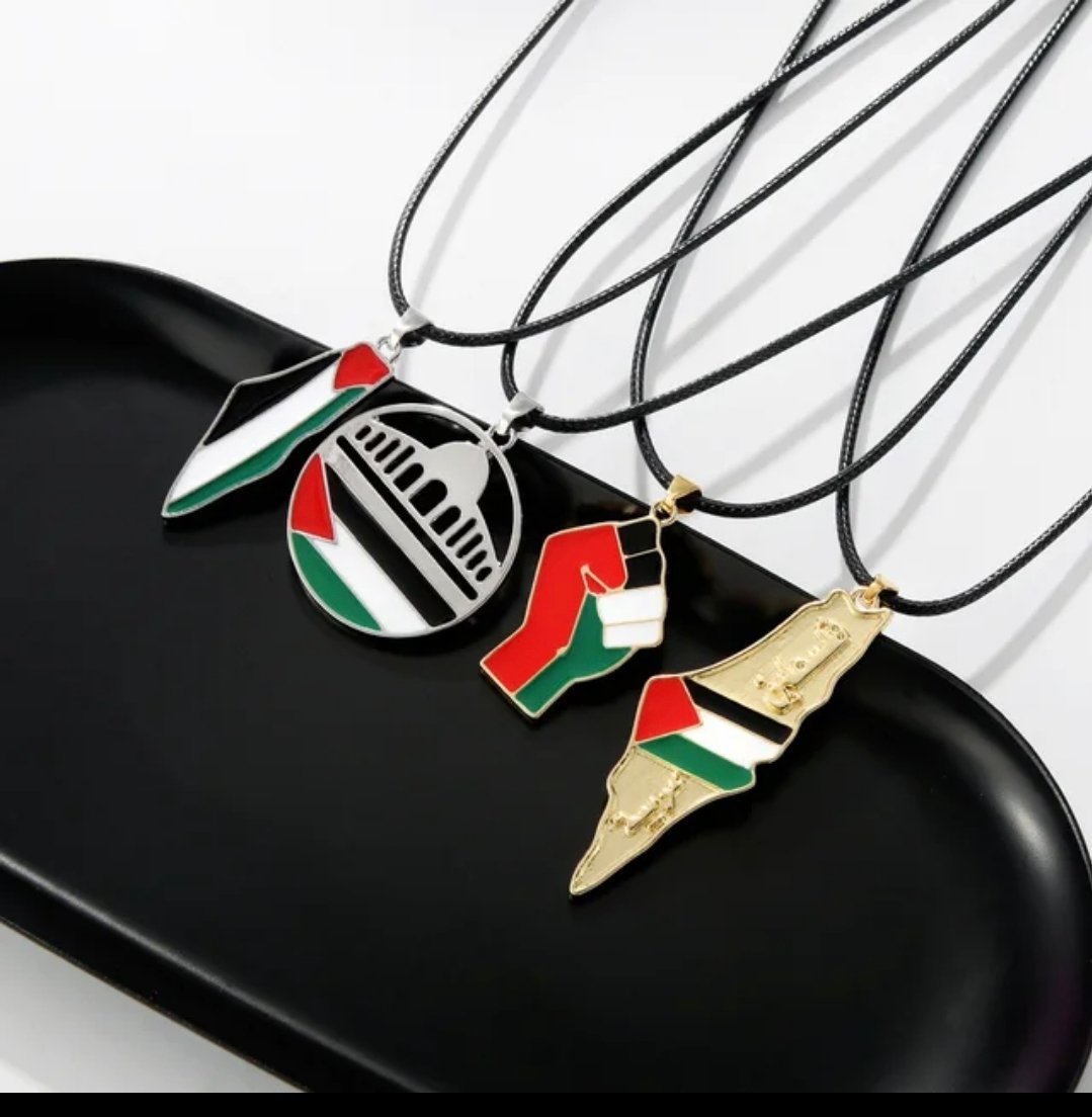 These necklaces are pieces of jewelry bearing Palestinian national symbols in the colors of the Palestinian flag. They are used as a symbol of support and solidarity with the Palestinian cause and national identity.