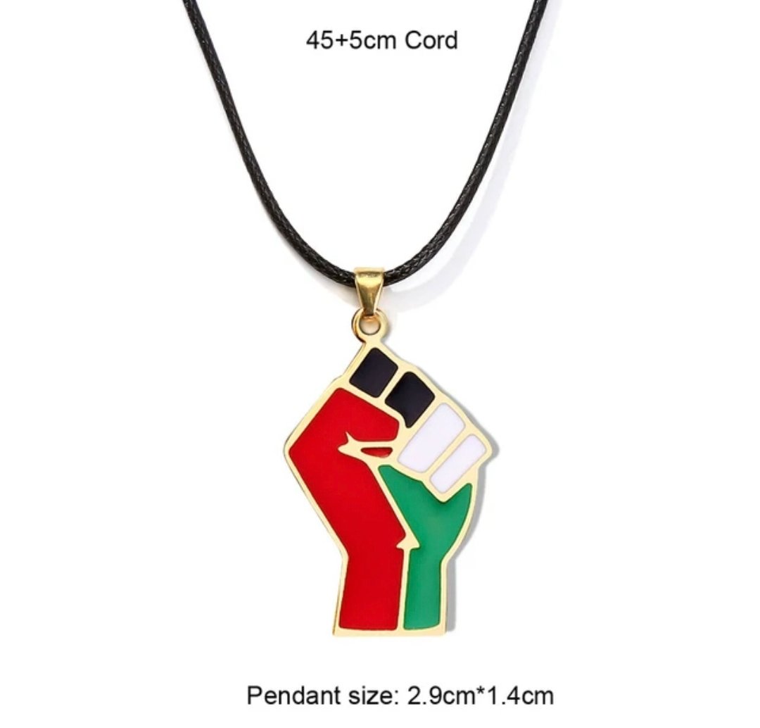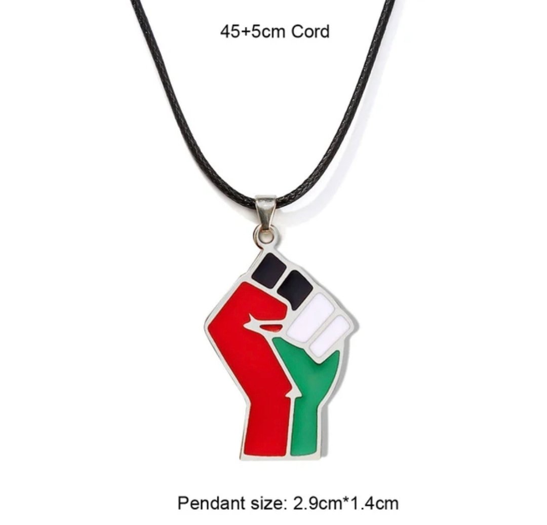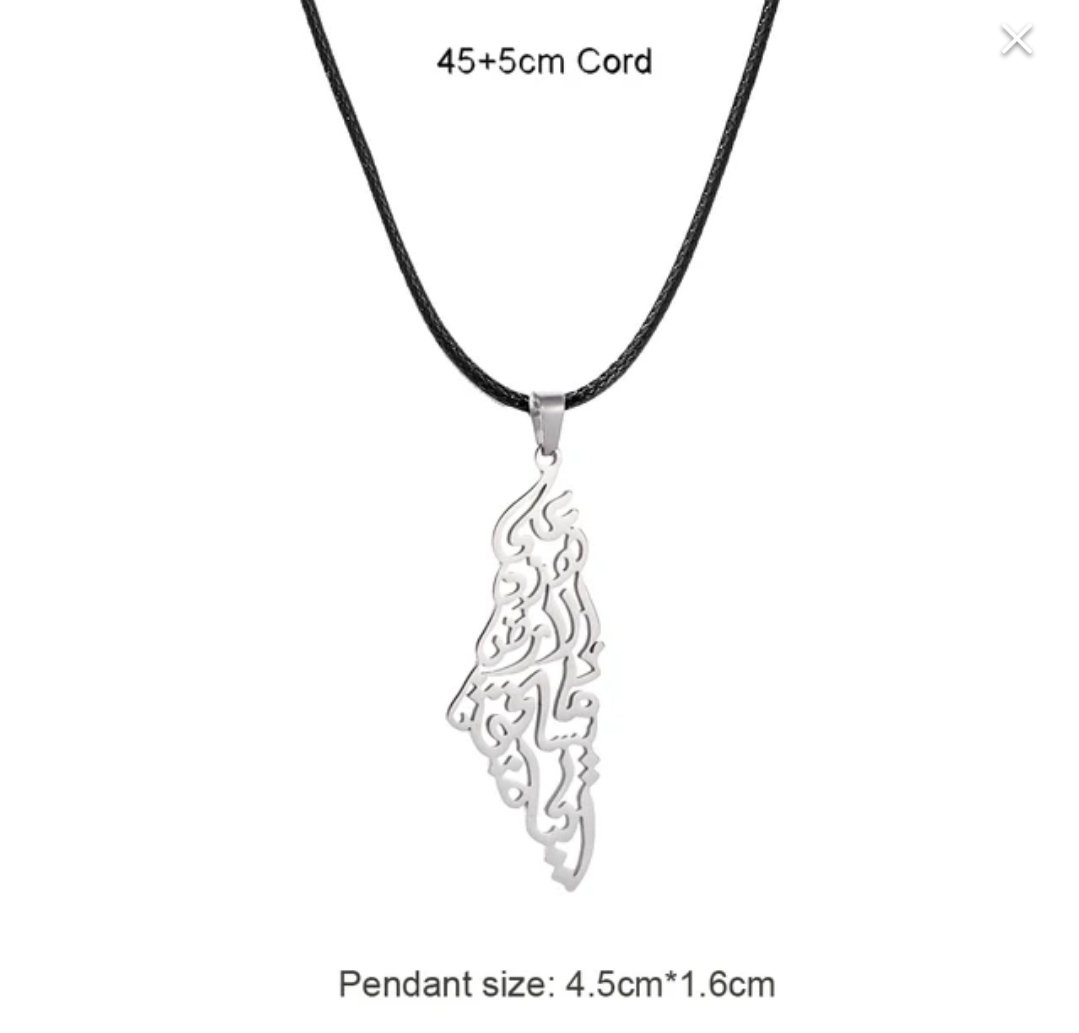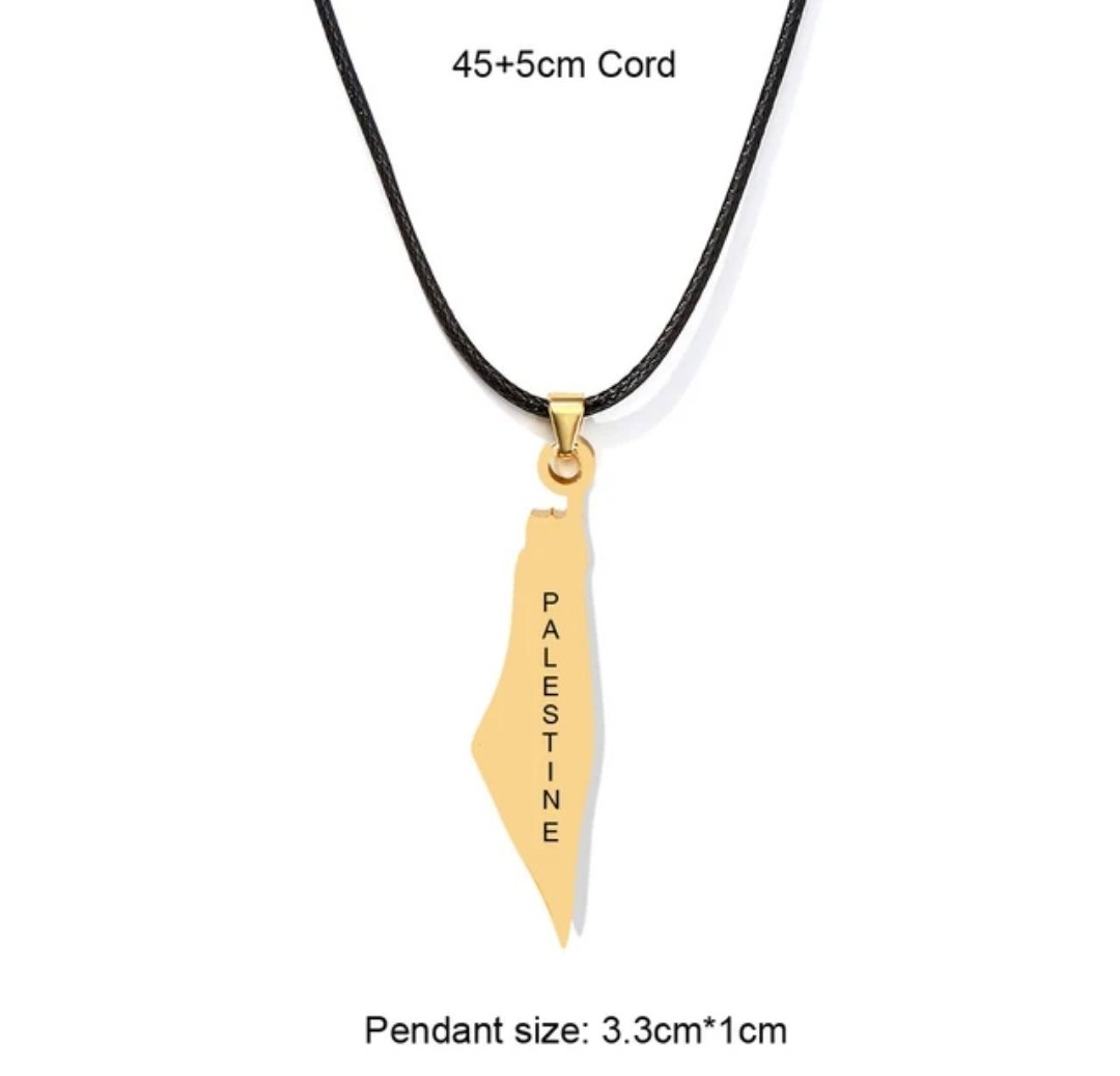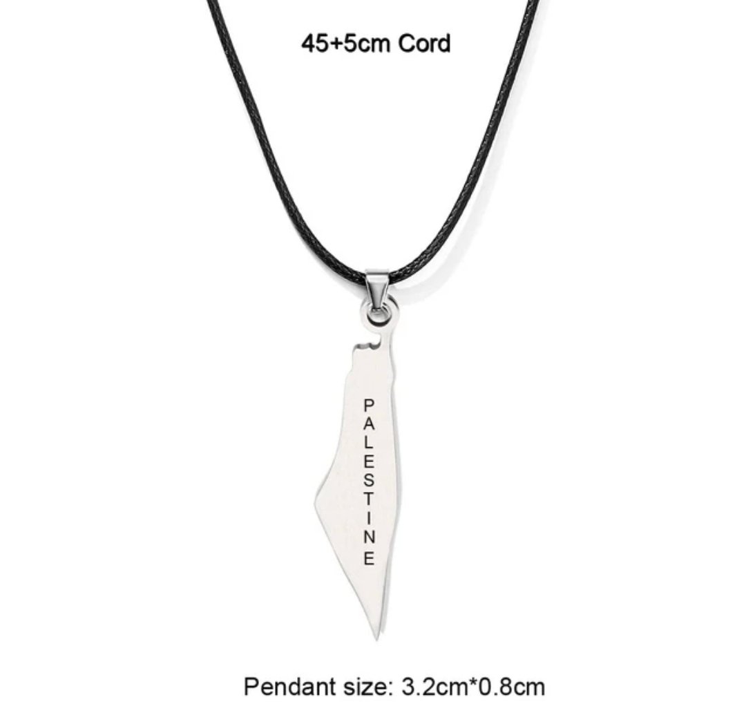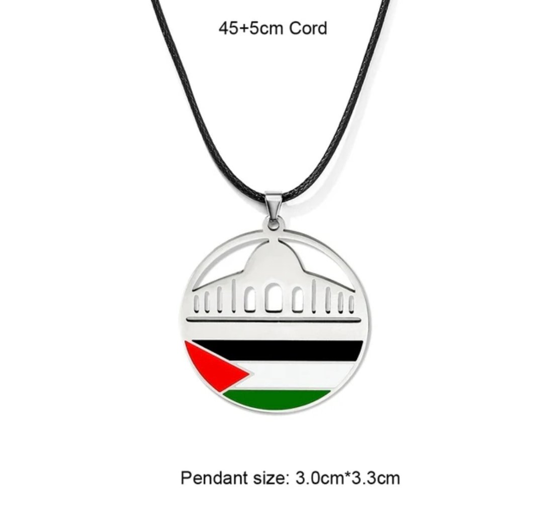 These necklaces are pieces of jewelry bearing Palestinian national symbols in the colors of the Palestinian flag. They are used as a symbol of support and solidarity with the Palestinian cause and national identity.